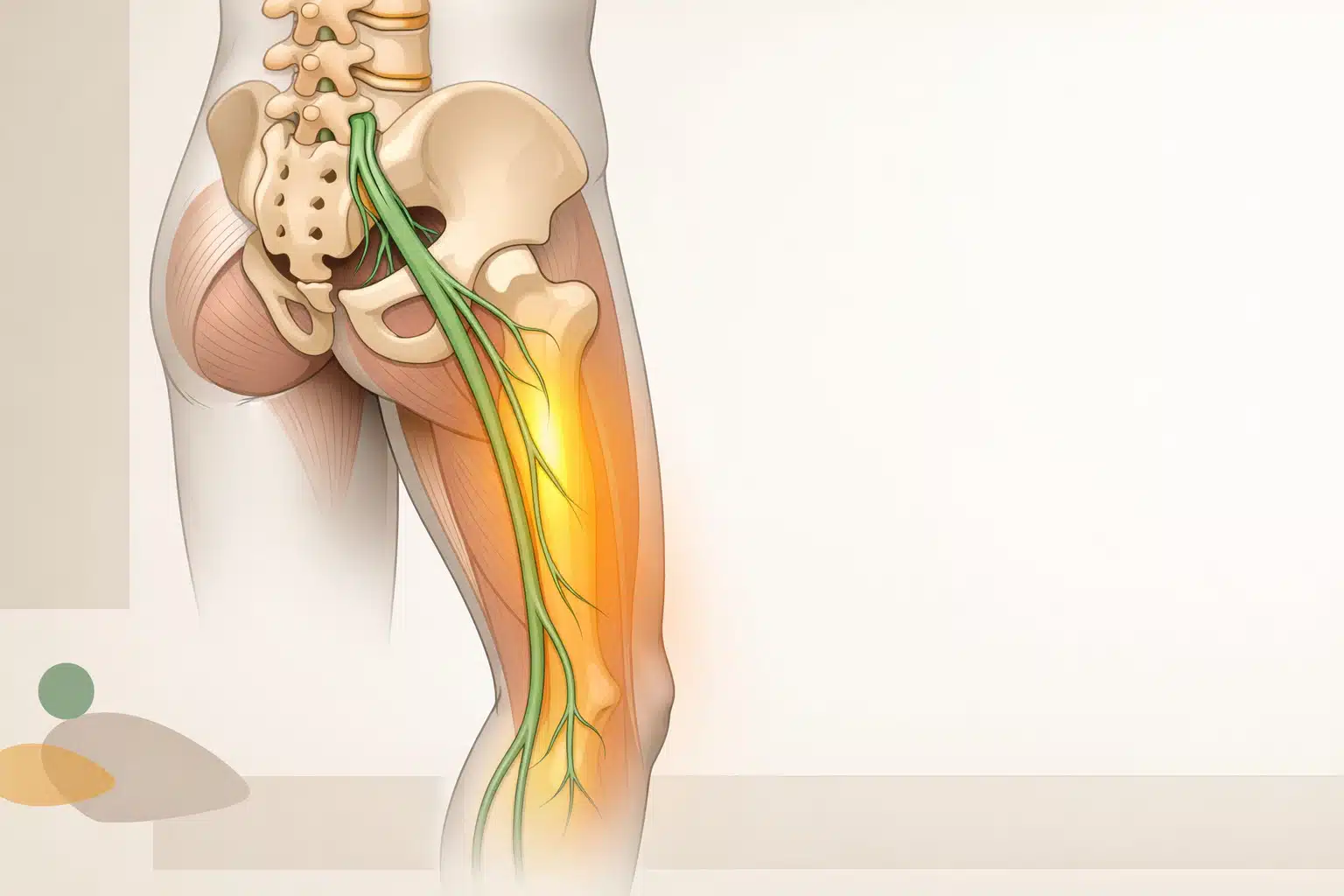 Sciatica refers to pain that radiates along the path of the sciatic nerve. This nerve is the longest and thickest in your body, running from your lower back through your hips and buttocks, then branching down each leg. When something compresses or irritates this nerve, it can cause pain, numbness, tingling, or weakness anywhere along its path.